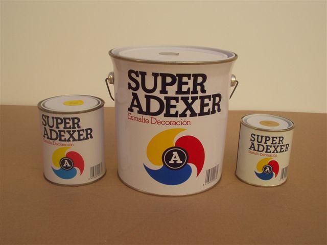 | ESMALTE SINTÉTICO "SUPER ADEXTER" | Para acabados tanto de interiores como de exteriores de alta calidad. Gran dureza, brillo, poder cubriente y brochabilidad. Puede aplicarse sobre todo tipo de superficies adecuadamente imprimadas. |